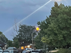 Harrison and I were taking a walk on Saturday evening. We saw the moon hiding behind this tree. It almost looks like the moon is sitting on the street light. Harrison was amazed. #beautifulmoon
